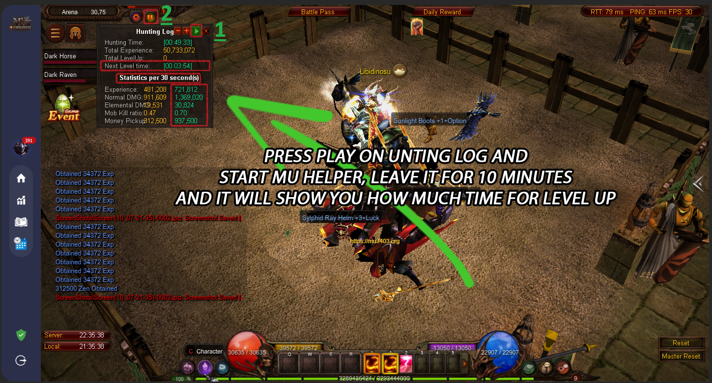| 4. Activate MU Helper | Start MU Helper to automatically collect EXP while the log runs. |